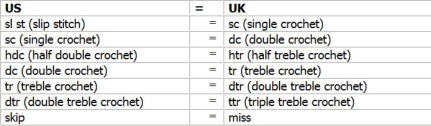 TC or TR Treble Crochet Yarn over twice, then insert your hook